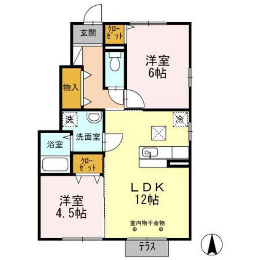 | 部屋の特徴 | クッションフロア、南向き、全居室フローリング |