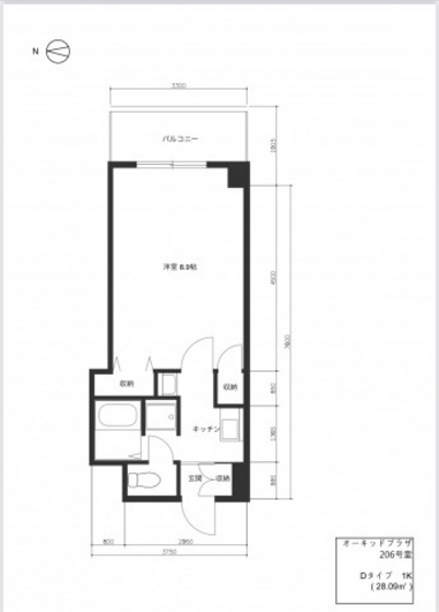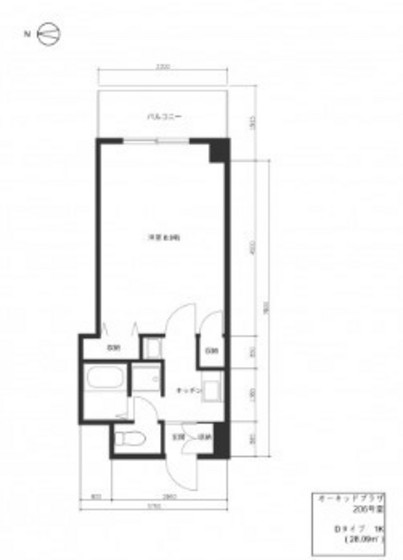 敷 0ヶ月 礼 1ヶ月 2 階/1K (28.09m²)