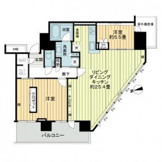 敷 2ヶ月 礼 1ヶ月 20 階/2LDK (94.39m²)