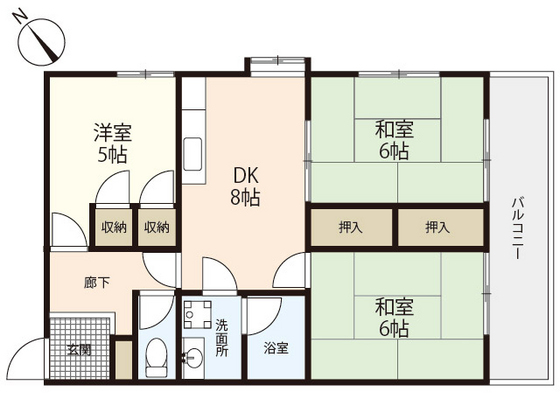 敷 3ヶ月 礼 1ヶ月 2 階/3LDK (63.00m²)