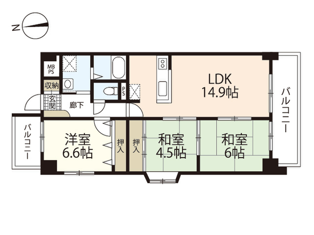 敷 2ヶ月 礼 1ヶ月 6 階/3LDK (70.15m²)
