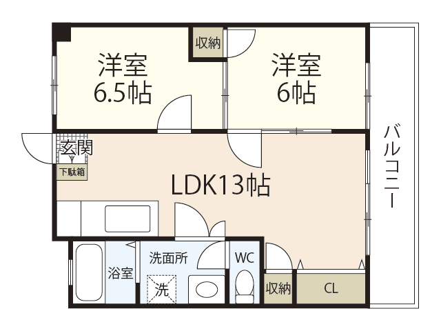敷 1ヶ月 礼 1ヶ月 2 階/2LDK (52.00m²)