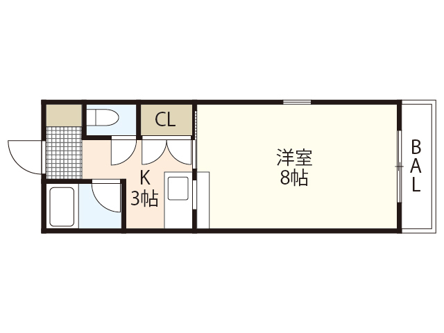 敷 1ヶ月 礼 1ヶ月 2 階/1K (23.36m²)