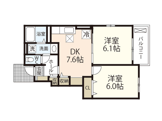 敷 0ヶ月 礼 6.45万円 2 階/2LDK (57.21m²)